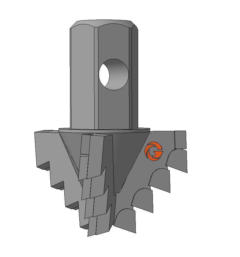Ступенчатая форма режущей кромки долота под углом 70⁰, обеспечивает устойчивое разрушение забоя скважины в виде крупных кусков горной породы наличия дополнительных плоскостей обнажения, что обеспечивает высокую скорость бурения и быстрое удаление разрушенной породы с забоя.